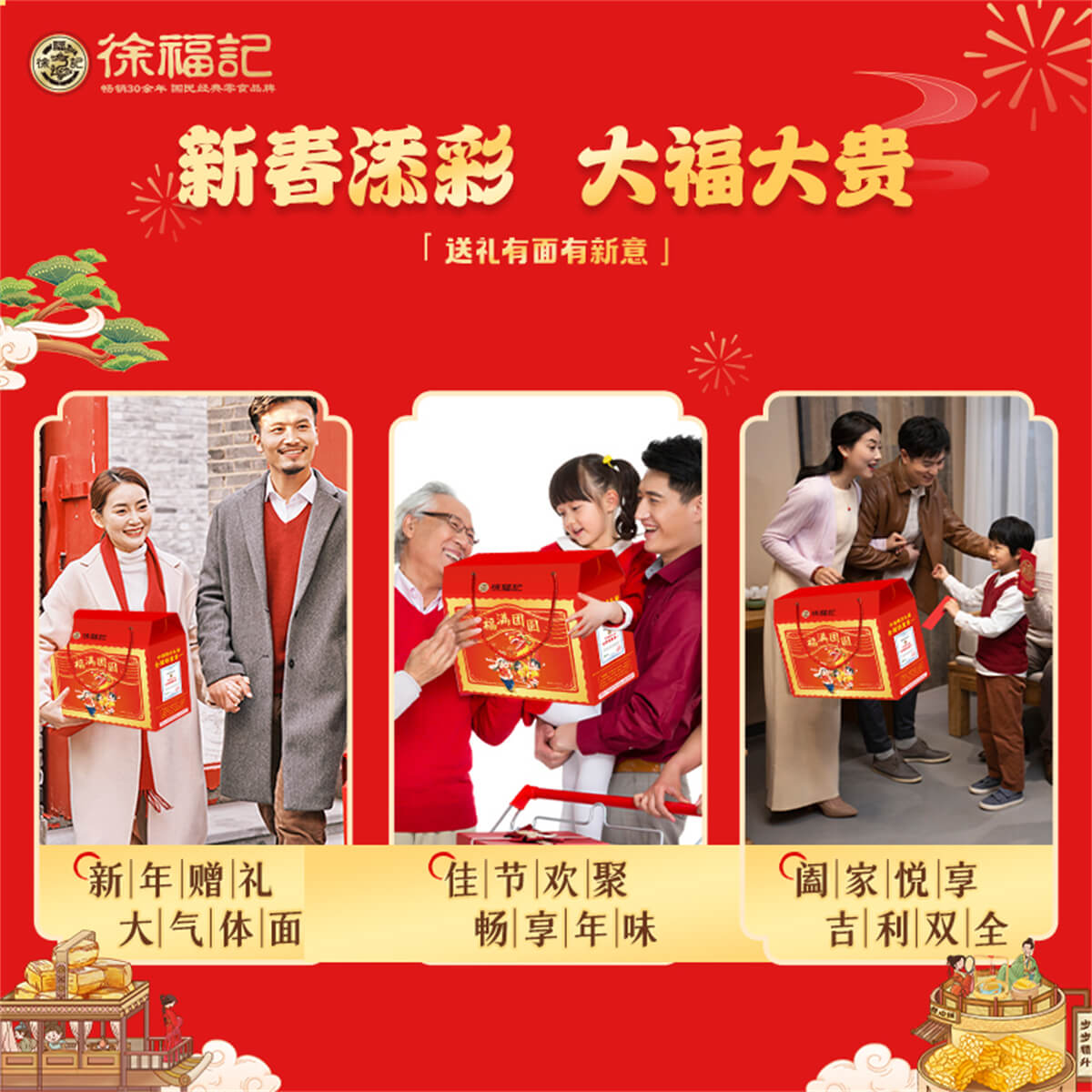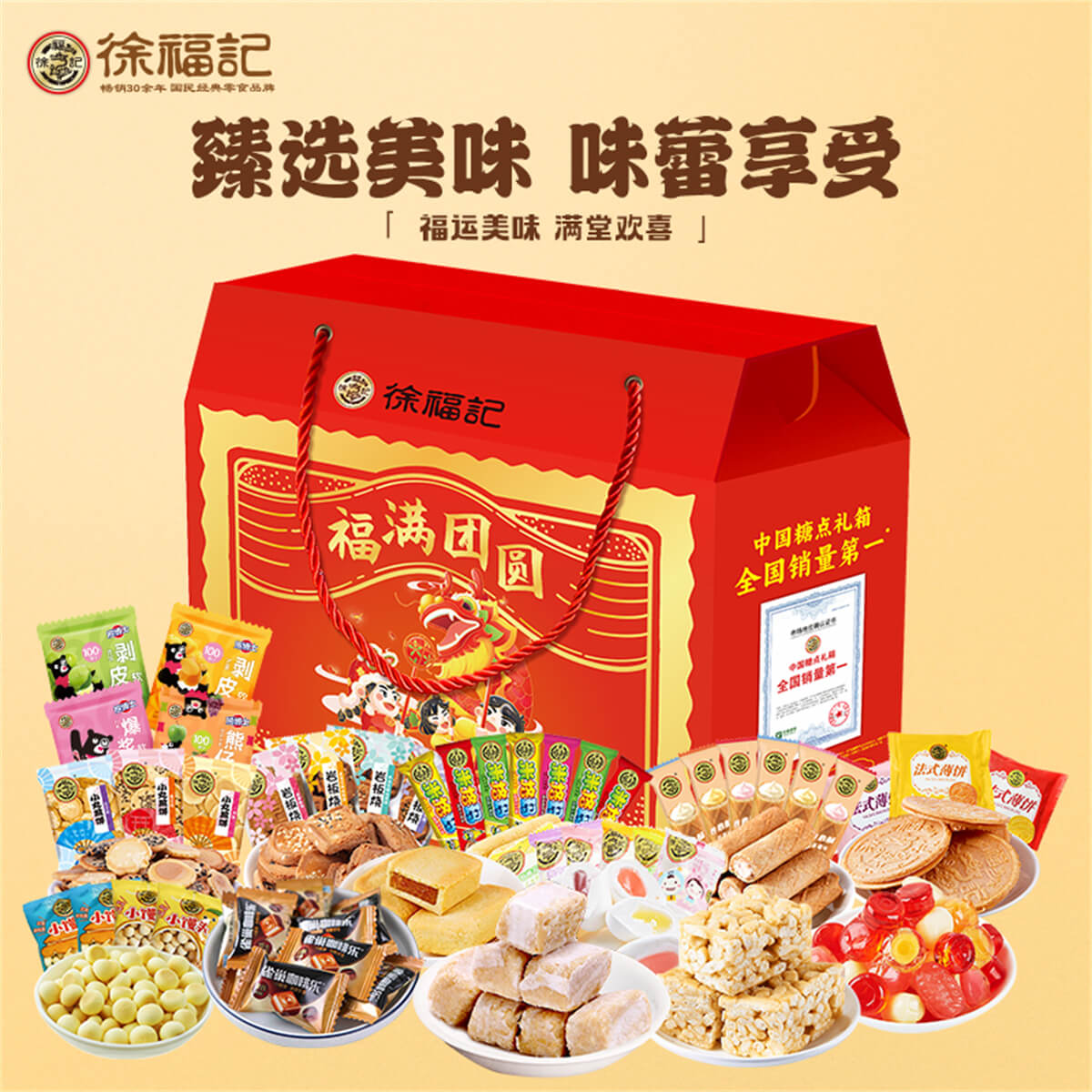 福滿團圓 發布時間:2025-01-04點擊:43 團購優惠請聯系我們 內容物:1:徐福記酥心糖150克*2袋2:徐福記沙琪瑪418克3:徐福記新年什錦糖120克*2袋4:100%果汁軟糖120克*2袋5:米格瑪110克*2袋6:徐福記鳳梨酥200克7:雀巢咖啡樂(罐裝)92g8:徐福記棉花糖242克9:徐福記綜合餅點200克*2袋(小丸煎餅、巖板燒、京屋果子、卷心酥、法式薄餅等) 請填寫您的信息 提交留言